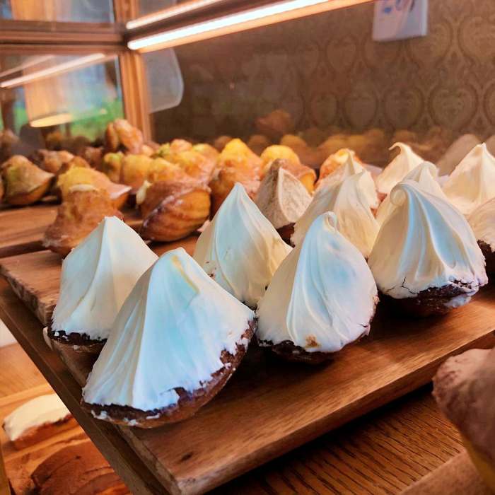 상큼한 레몬커드를 채우고 이탈리안 머랭을 올린 마들렌 입니다